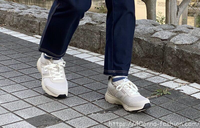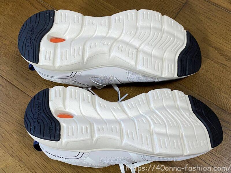 靴底は軽くて弾力性のある靴底設計になっています。つま先とかかとに耐久性の高いラバーパーツが使われています。