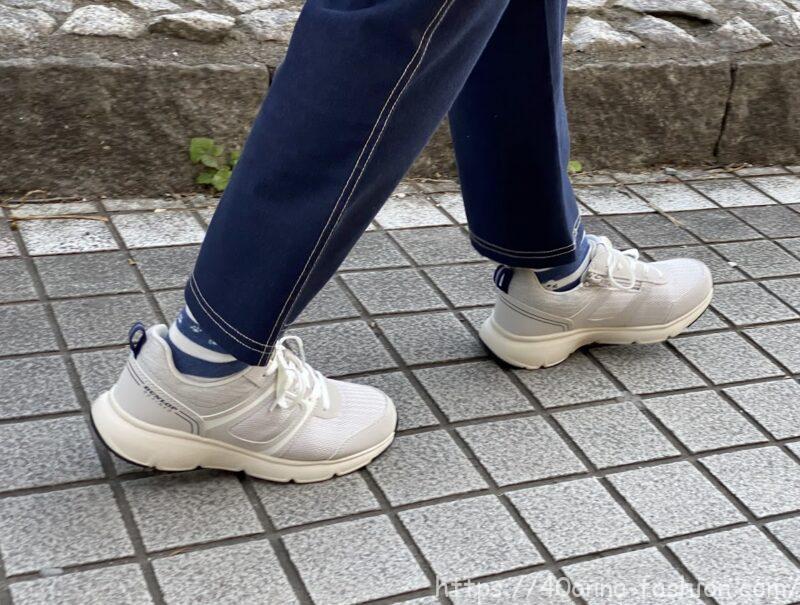 結果的には23でピッタリでしたが、4Eにしてはそこまで幅広ではないとの印象です。分厚い靴下だと少しきついかなという感じです。私の場合は幅広だけでなく甲高もあるので思ったより小さく感じだのだと思います。ただ、紐を緩めれば十分快適にはけたので交換せずに23㎝を履いています。