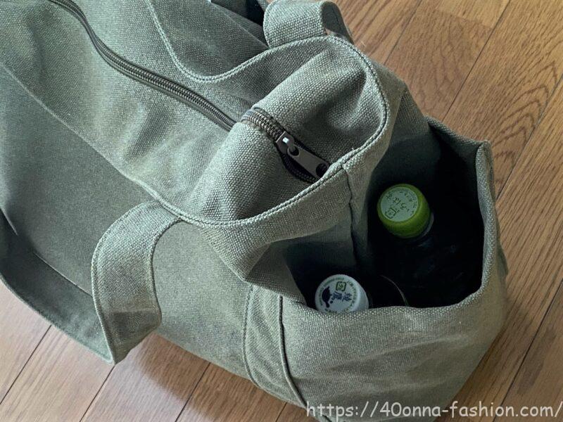 サイドのポケットは500mlペットボトル2本が入るサイズです。