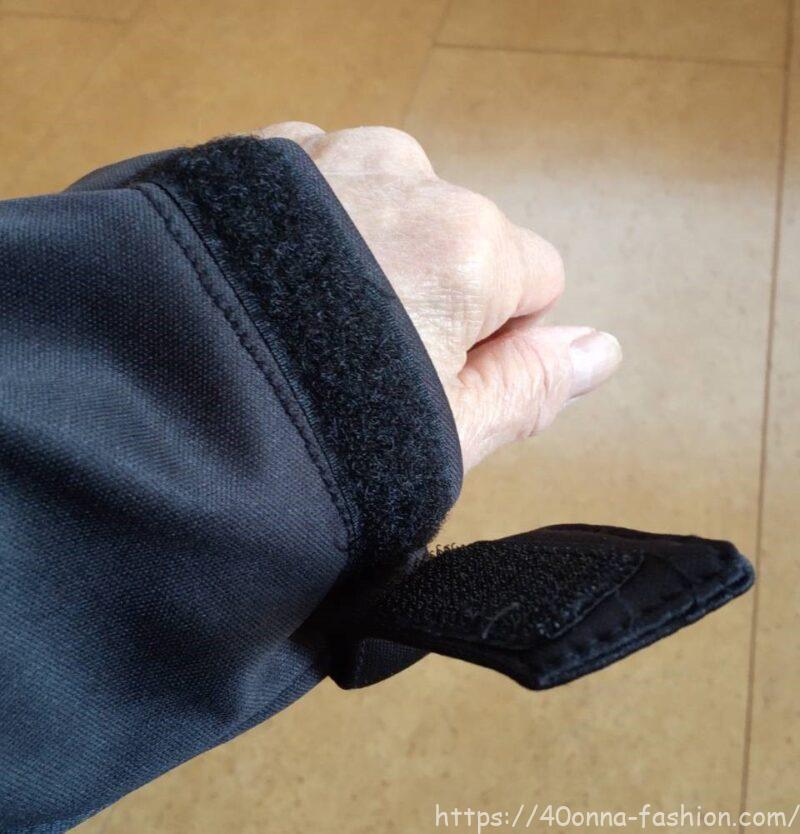 袖口はサイズ調整可能なベルクロ使用なので手首にぴったりをフィットさせることができます。