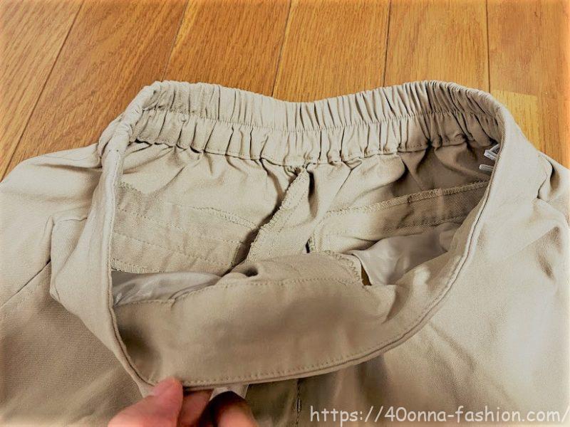 はっ水極のび ワイドパンツ(Mサイズ)はウエスト67、ヒップ104なので、お尻が大きい人でもピチピチにならずに履けます。透け感も全然ないので安心です。