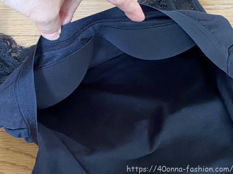 裏側までゴムがしっかりついているので、ブラがずれることもありません。
