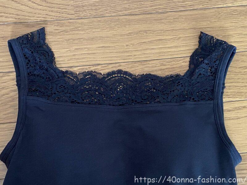 ラディアンヌのブラトップは以前から愛用していますが、生地が厚めのため、夏には汗ばむのが難点でした。それを解決したのが今回紹介するブラトップ。レースがついて生地が薄くなったバージョンです。バストのホールド感はこれまでのブラトップと同じです。
