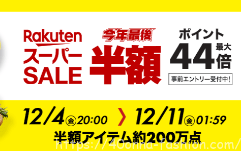 本日(12月4日)20時から楽天スーパーセールが始まります。スーパーセールは3か月に一度開催されており、通常のセールよりも割引率が高くなっています。半額商品も多数あり、中には80%オフなどの目玉商品もあります。