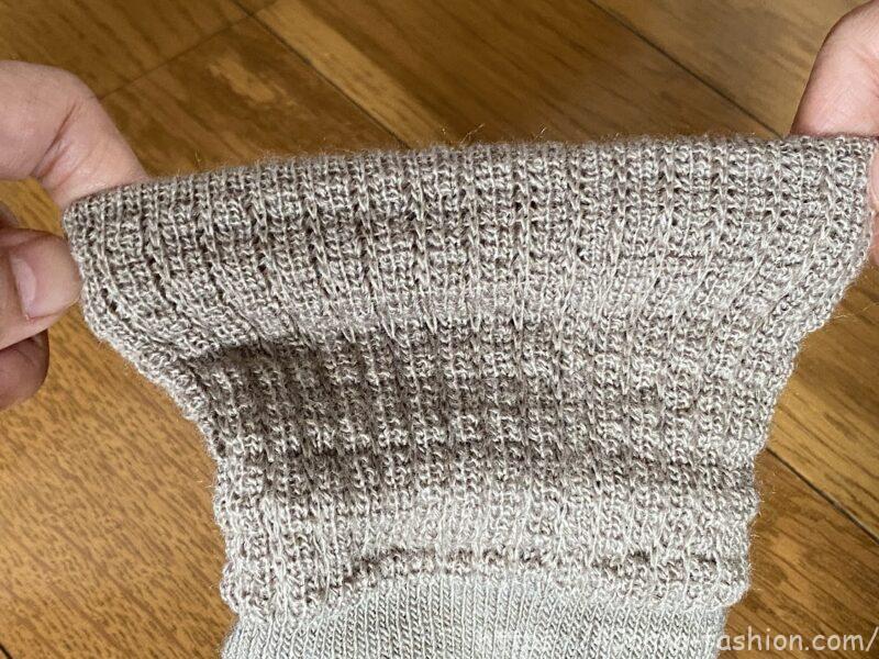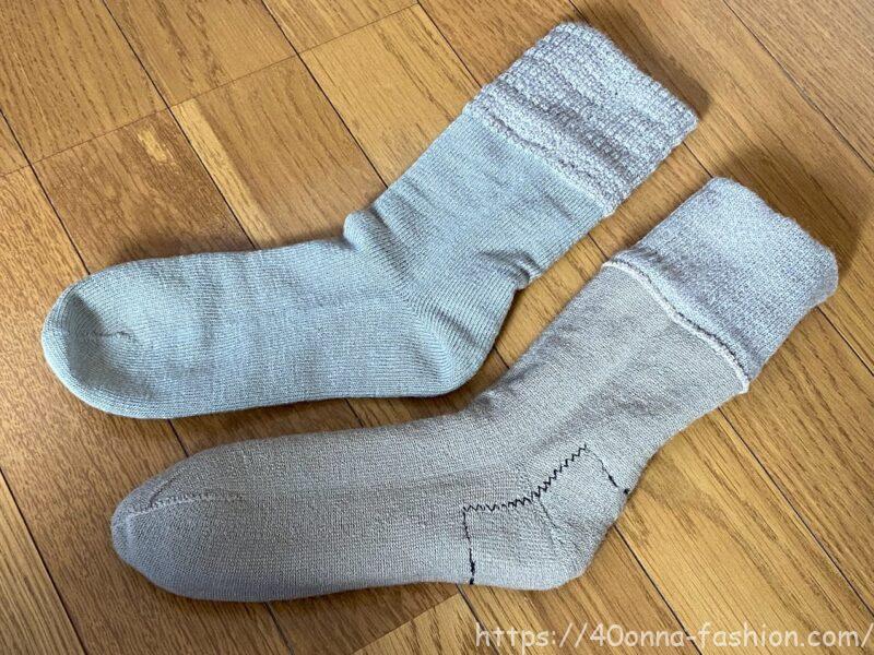 写真右が裏返した状態です。かかとに保湿シートが縫い付けられていて、かかとをケアしてくれます。