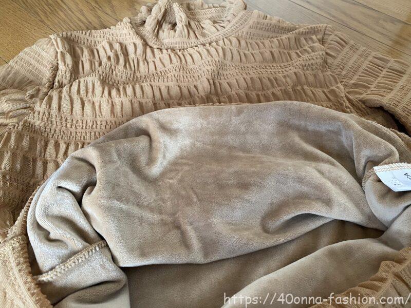 裏起毛くしゅくしゅシアートップスが暖かい!