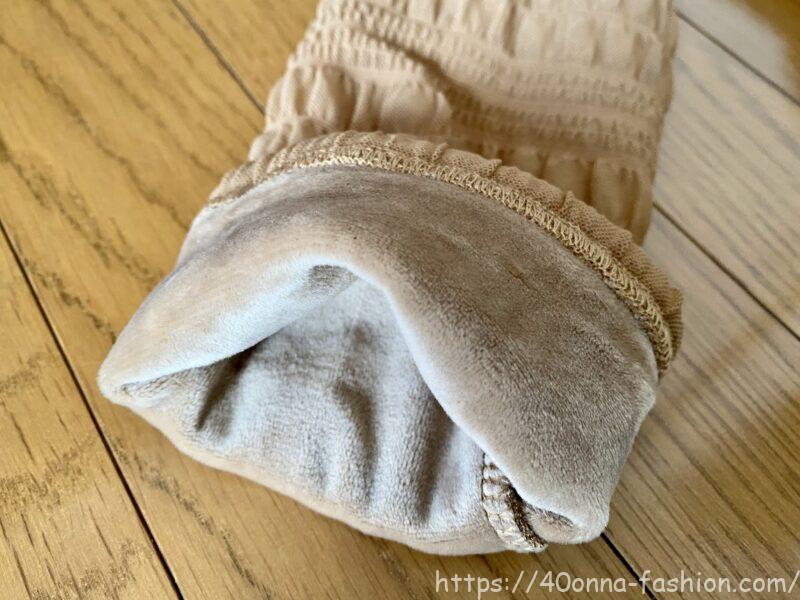 表からみるとすっきりとして厚手にはみえませんが、裏は起毛になっていてもこもこです。