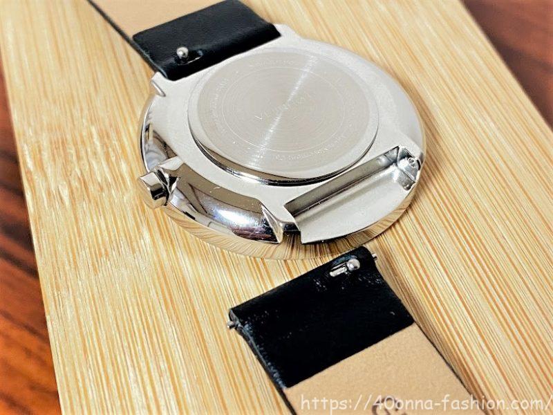 ストラップはブラックの本革で、なめらかで付け心地も快適です。